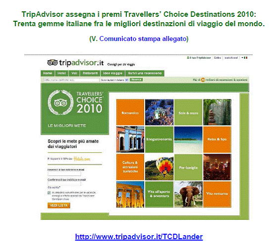 Per visualizzare la classifica completa dei "Travellers' Choice Destinations Awards 2010" è possibile consultare la sezione online: http://www.tripadvisor.it/TCDLander