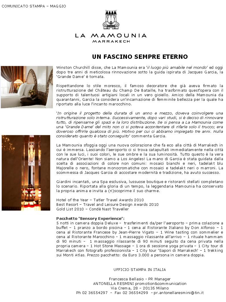 LA MAMOUNIA UN FASCINO SEMPRE ETERNO