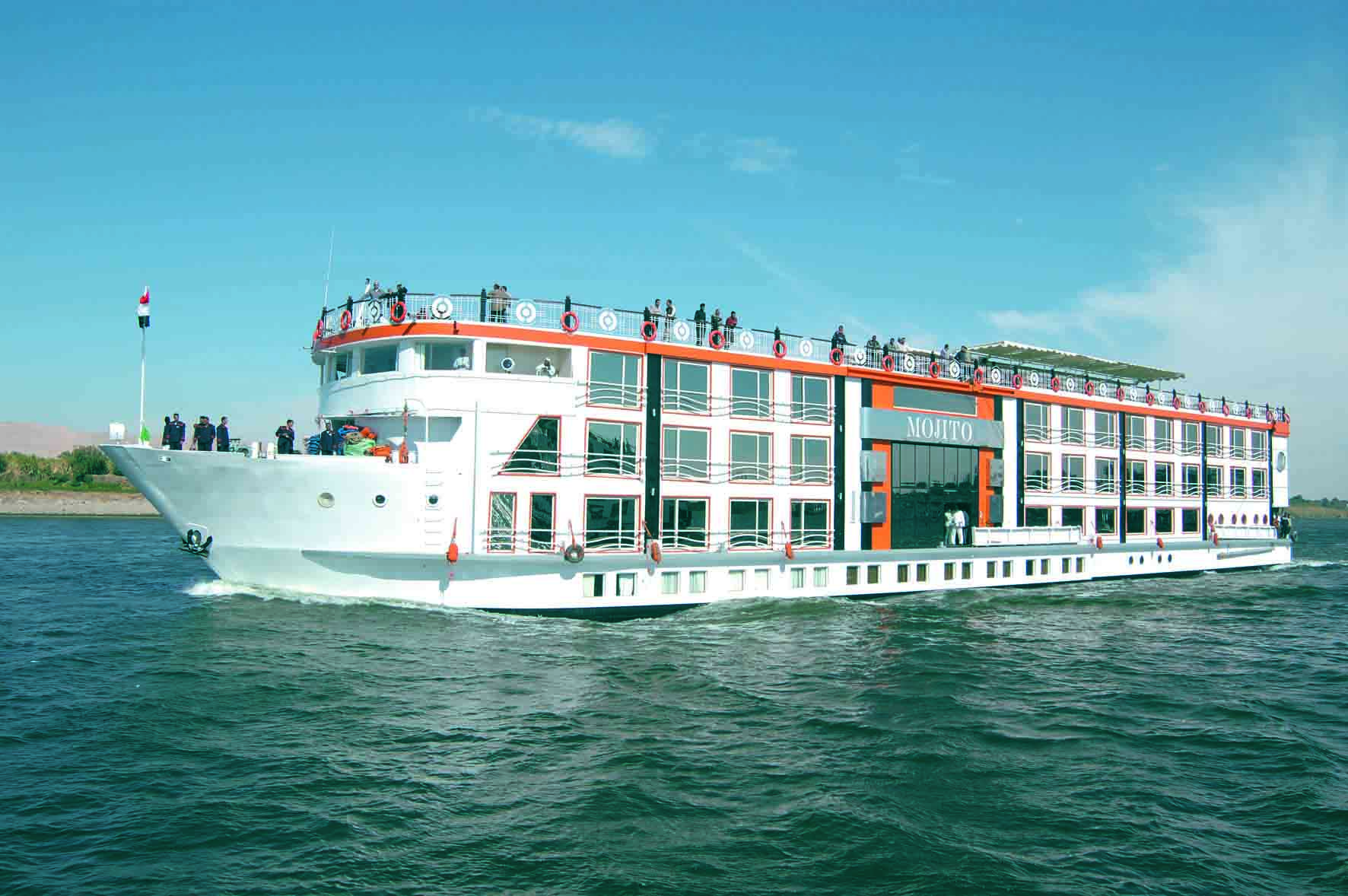 La suggestione dei grandi templi di Karnak e Luxor con le loro gigantesche foreste di colonne, l'eleganza di Philae, circondato dall'acqua, la possenza di Abu Simbel e la dolcezza delle feluche che sfilano silenziose mosse solo dalla carezza del vento. Il Nilo diventa ancora più indimenticabile a bordo di una motonave dove il servizio è impeccabile, il comfort di alto livello e l'atmosfera di altri tempi ricorda il fascino dell'era coloniale. Il tour operator Passatempo, specializzato nel Paese dei faraoni, propone in esclusiva per l'Italia la motonave Mojito, tra le poche a essere stata certificata 5 stelle dal Governo egiziano: quattro ponti, 69 cabine junior-suite (21 mq) e una presidential suite con ottimo servizio e personale qualificato.