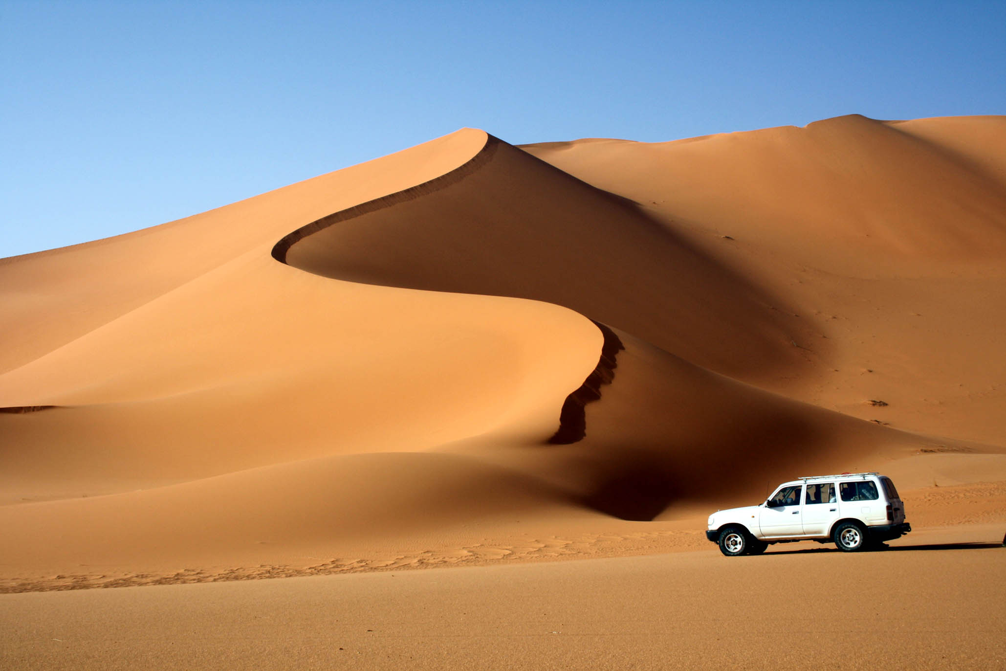 Ovviamente questo deserto può essere percorso soltanto in convoglio di più macchine, in assoluta autonomia, con auto idonee e autisti assolutamente provetti esperti nella navigazione GPS: senza queste condizioni si rischia davvero grosso. L'operatore milanese "I Viaggi di Maurizio Levi" (tel. 02 34 93 45 28, www.deserti-viaggilevi.it), specializzato in spedizioni nei deserti di tutto il mondo e specialista sulla Libia da ventenni, nel proprio catalogo dedicato a questa destinazione visionabile in internet propone in tutta sicurezza un viaggio di 11 giorni che offre l'opportunità di un contatto con le diverse tipologie del deserto: le grandi dune, le montagne di roccia, gli altopiani rocciosi e sassosi, le forme miste intermedie. Un viaggio ideale per veri appassionati sahariani. Dalla capitale Tripoli si raggiunge in aereo Sebha, capoluogo del Fezzan, e da qui Germa, l'antica capitale dei bellicosi Garamanti citati dagli autori latini e antesignani degli attuali tuareg, e quindi l'oasi di Murzuq, da dove in 4 giorni di totale isolamento si attraversa diagonalmente da est ad ovest l'omonimo deserto. Si approda così nel Messak Mellet, un vasto e arido altipiano roccioso costellato da pregevoli incisioni rupestri preistoriche, e attraverso una serie di corridoi tra le dune si supera il piccolo erg di Uan Kaza per raggiungere il parco nazionale del Tadrart Acacus, protetto dall'Unesco per le incredibili erosioni eoliche e per le incisioni e pitture preistoriche celate nelle sue grotte. Si raggiunge infine il tratto meridionale dell'erg di Ubari, un altro dei grandi deserti del sud-ovest libico, dove le alte dune celano l'incredibile presenza di una ventina di laghi verde-smeraldo, una delle più spettacolari visioni offerte dal Sahara, presso le cui rive ha vissuto del tutto isolata per millenni una popolazione negroide che si cibava unicamente di datteri e di micromolluschi lacuali. L'ultima giornata viene riservata alla visita di Leptis Magna, capoluogo dell'Africa romana, i cui grandiosi e ricchi monumenti potevano competere con quelli della Roma imperiale.