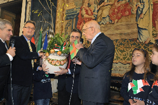Nel Lazio, a Roma, nella Sala dei Corazzieri del Quirinale, si è tenuta una importante cerimonia di consegna al Presidente Giorgio Napolitano di una piantina di melograno, considerato fin dagli antichi come il frutto del buon augurio. Questa giovane pianta appartiene alla varietà Grossa di Faenza, così chiamata in quanto produce frutti di grandi dimensioni che possono raggiungere i due chilogrammi. La piantina, consegnata a Giorgio Napolitano da Sergio Guidi e Gabriele Piazzoli di Arpa Forlì Cesena (ma anche Presidente e Segretario dell'Associazione Patriarchi della Natura in Italia), è stata donata in un vaso di ceramica realizzato da una artista forlivese che ha dipinto i frutti della mela punica e adornato il tutto con frutti veri e il nastro tricolore. Non a caso, sul retro del vaso è riportata, in oro zecchino, la scritta: "Il Tricolore del Melograno", per il verde delle sue foglie, il rosso dei chicchi e il bianco della membrana che li avvolge, sicuramente, la pianta più idonea per i 150° dell'Unità d'Italia, per la Festa dell'Albero 2011 e di buon augurio per il Nostro Presidente che in un momento così difficile della nostra storia ha saputo mantenere i nervi saldi. La cerimonia nella Sala dei Corazzieri del Quirinale è stata molto suggestiva e la sala era pienissima; Napolitano ha gradito molto il dono della pianta e ha apprezzato la composizione, il vaso decorato risaltava molto e lo hanno apprezzato anche i numerosi partecipanti. Alla cerimonia erano presenti, oltre al Presidente Napolitano, diversi Ministri del nuovo Governo: Corrado Clini dell'Ambiente con l'ex Ministro Stefania Prestigiacomo, Francesco Profumo, Ministro della Pubblica Istruzione, Anna Maria Cancellieri, Ministro dell'Interno, Mario Catania, Ministro delle Politiche Agricole, tanti altri funzionari dei vari Ministeri e di Ispra. C'era anche la moglie di Napolitano, la Signora Clio, che prenderà in cura il melograno essendosi dichiarata appassionata di piante da frutto. Alcuni studenti delle scuole alluvionate della Liguria hanno partecipato alla cerimonia per la "Giornata Nazionale dell'Albero", quest'anno, dedicata alle vittime della tragica alluvione che ha colpito la Liguria e la Toscana. Alcuni di loro hanno posto domande a Napolitano e in sintesi queste sono state le risposte: "Per la tutela dell'ambiente servono politiche costanti, per molti anni. Non si risolve un problema con una politica di cinque anni e dico cinque anni, pensando al fatto che si vota ogni cinque anni per il Parlamento. Ma sia che si voti per il Parlamento, sia che cambi la situazione politica, non si deve ricominciare sempre da capo: ci vuole continuità. Costanza, tenacia, continuità" - e ancora - "in Italia bisogna pensare alle energie rinnovabili che non provocano sfruttamento, non provocano danni all'ambiente o non hanno costi insopportabili: qui si deve realizzare il massimo di cooperazione tra ricerca scientifica, innovazione tecnologica, capacità di investire in modo giusto e, nello stesso tempo, capacità di formare i cittadini al rispetto di questi valori e all'utilizzazione migliore di queste risorse". Il Capo dello Stato che, nell'occasione, ha consegnato alla moglie la Medaglia d'oro alla memoria di Sandro Usai, il giovane volontario della Protezione civile che perse la vita a Monterosso lo scorso 25 ottobre, ha voluto rendere omaggio a tutti i volontari - "Dobbiamo prevenire i disastri guardando lontano, e poi contare sui giovani, sulle loro energie, sul loro slancio, sulla loro capacità di essere solidali e anche di correre rischi e sacrificarsi" - e parlando degli angeli del fango - "Sono una grande risorsa dell'Italia, una nostra tradizione". Alla domanda su "come promuovere, tra i coetanei ma anche tra gli adulti, il rispetto dell'ambiente e delle regole", il Presidente della Repubblica ha risposto sollecitando anche gli studenti ad organizzarsi: "Organizzatevi - se mi permettete - non soltanto per protestare contro quello che non va nella scuola, contro quello che non va nell'Università, a mano a mano che ci arrivate. Organizzatevi per fare delle proposte, per sollecitare delle scelte, per indicare delle necessità che sono vitali per lo sviluppo del paese".