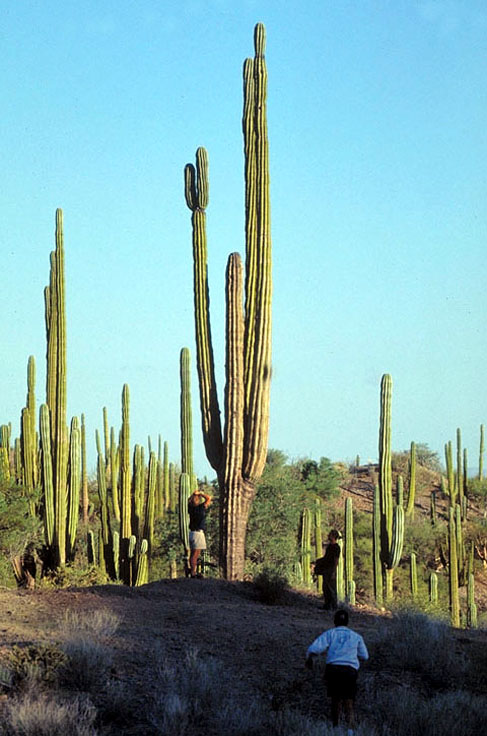 Baja California, un nome che in italiano potrebbe risultare fuorviante. Non si tratta infatti di una baia marina, e la California statunitense c'entra quasi nulla, trovandosi in territorio messicano. La Bassa California è invece una penisola lunga ben 1.200 chilometri, quindi più dell'Italia, ma larga solo tra 45 e 168, che separa la costa occidentale del Messico dall'oceano Pacifico mediante lo stretto Mare di Cortès o golfo di California. Questa lunga e stretta striscia di terra offre un paesaggio assai vario: una spina dorsale montuosa - le Sierre - che al nord supera i 3.000 m, profondi canyon, antichi vulcani, un enorme deserto sabbioso e roccioso che ospita la maggiore e più spettacolare concentrazione di cactus e piante grasse del pianeta, ma anche oasi con palme da dattero, agrumeti e coltivi, e poi 3.000 km di coste con rocce e spiagge stupende, acque color verde smeraldo nel golfo e blu scuro nel Pacifico, lagune e una miriade di isole su uno dei mari più pescosi del mondo, ricco di 800 specie diverse, paradiso di surfisti e pescatori, dove si incontrano tartarughe, leoni marini, delfini, foche elefanti, otarie, balenottere azzurre, megattere, orche, pellicani, starne, gabbiani e la maggior varietà di cetacei degli oceani e, fino al 1940, anche i più ricchi banchi di ostriche perlifere, tra cui le preziosissime perle rosa e nere. Scoperta nel 1535 dai conquistadores di Cortès, fino al 1700 si credeva trattarsi di un'isola e dei pochi indios originari che vi fecero sorgere diverse missioni di gesuiti oggi restano solo stupende pitture rupestri in diverse grotte e chiese dalla tipica architettura coloniale. Resistono invece esponenti della fauna autoctona, che annovera diversi endemismi, come cervi, volpi, coyotes, puma, linci, procioni, crotali e serpenti a sonagli. I cactus offrono un vero spettacolo: dalle agavi, da cui si estrae la tequila, ai cardoni a forma di candelabro alti fino a 18 metri, ai cirio con in cima fiori rossi e gialli. Fino al 1973, alla costruzione della strada che l'attraversa da nord a sud per 1.700 chilometri, costituiva uno degli ambienti naturali più incontaminati del continente nordamericano. Gli ospiti più famosi sono tuttavia le balene grigie, che tra gennaio e marzo migrano dall'Alaska con un viaggio di 8 mila chilometri per venire a svernare, riprodursi, partorire e svezzare i loro piccoli nelle acque basse e calde delle lagune sul Pacifico, ricche di plancton e molluschi. Ogni anno il fenomeno riguarda 15 mila esemplari, che scambiano queste lagune per parchi giochi. In questo periodo sono infatti talmente mansuete da avvicinarsi alle imbarcazioni dei turisti tanto da farsi accarezzare: prima mettono fuori la testa per osservare la situazione, poi cominciano a fare salti, danze e acrobazie, fino a schizzare fuori dall'acqua con tutto il corpo, per ricadere sulla schiena con grande esplosione di spruzzi. Solo di recente si è scoperto che questi animali, lunghi fino a 14 metri e del peso di 30-40 tonnellate, dispongono di un'intelligenza complessa, possiedono un linguaggio articolato basato su suoni a bassa frequenza udibili anche a ragguardevole distanza e un complesso comportamento sociale; tra questi ultimi rientra anche la fecondazione, che avviene dopo poderosi balzi fuori dall'acqua, coinvolgendo fino ad una ventina di esemplari che si accoppiano per ore, scambiandosi allegramente i partner.