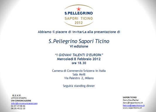 S. PELLEGRINO SAPORI TICINO 2012: ECCELLENZE GASTRONOMICHE CON "I GIOVANI TALENTI D'EUROPA"