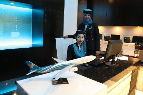 Questa lounge, realizzata conformemente al nuovo concetto di lounge sviluppato di recente dalla compagnia, può ospitare fino a 40 passeggeri nel lusso più raffinato. I servizi disponibili per i passeggeri di Premium comprendono anche l'utilizzo di un business center dotato di postazioni private con collegamento internet a banda larga e WiFi. I passeggeri hanno inoltre a disposizione una varietà di spuntini caldi e freddi, dai tradizionali piatti arabi a quelli orientali, preparati sotto l'attenta supervisione dello chef del rinomato Dusit Thani Hotel di Bangkok; possono gustare bevande calde e deliziosi succhi di frutta freschi o sorseggiare un aperitivo mentre sfogliano quotidiani e riviste o guardano programmi nazionali e internazionali sulla TV satellitare. E' prevista anche "una zona dedicata al riposo" con comodi divani letto per i passeggeri con coincidenze lunghe che hanno il tempo per rilassarsi.