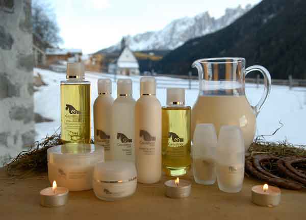 le proprietà del latte racchiuse nella linea cosmetica propria dell'hotel ‘Cavallino Care'